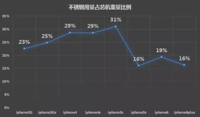 全家福,图片来源:i2.ypcdn.com 手机所用材料详情: iphone是工业设计领域的焦点,iphone使用的材料也成为其它厂商追捧和效仿的对象。每款iphone上市都能掀起一阵产业风暴。从iphone3G到最新的iphone6,从不锈钢到铝合金,从塑料到玻璃到塑料再到金属,其中的变化趋势如何呢? 不锈钢从iphon5c之后,不锈钢的用量变少,阳极...