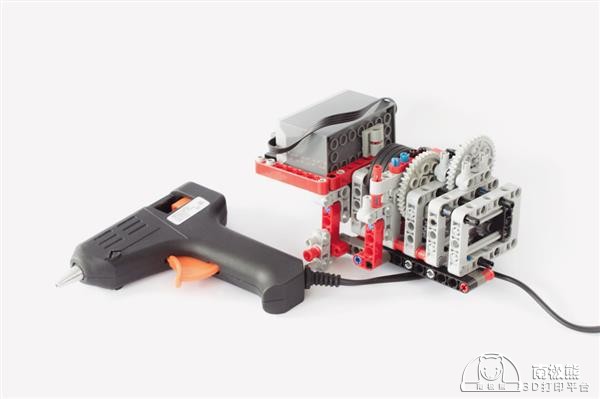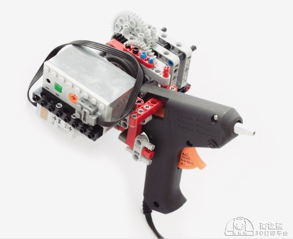 学生用乐高积木和热胶枪制造一部手持式3D打印机