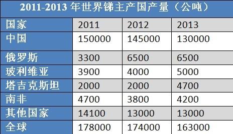 锑资源分布和产量概况