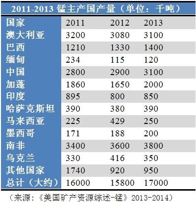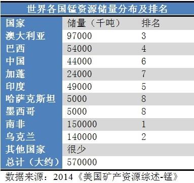 锰资源分布和产量