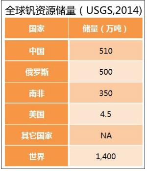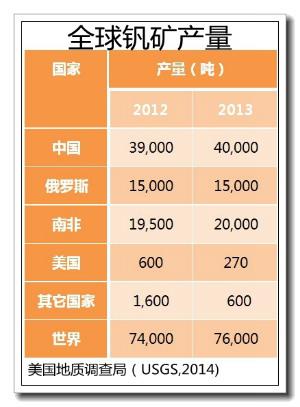 钒资源储量和矿产产量