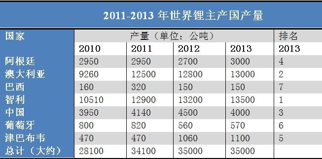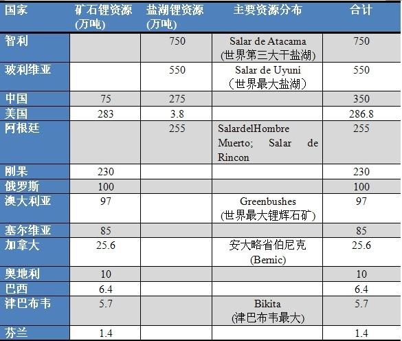 资源分布和产量资源分布锂在地壳中的含量约为0.0065%,已知的含锂矿物有150多种,主要以锂辉石、锂云母、透锂长石、磷铝石矿等形式存在。根据美国地址调查局2014年发布的数据,全球锂资源储量约为1300万吨,探明储量约为3950万吨。地区分布世界上锂资源比较丰富,主要分布在南美洲、北美洲、亚洲、大洋洲以及非洲。国家分布根...