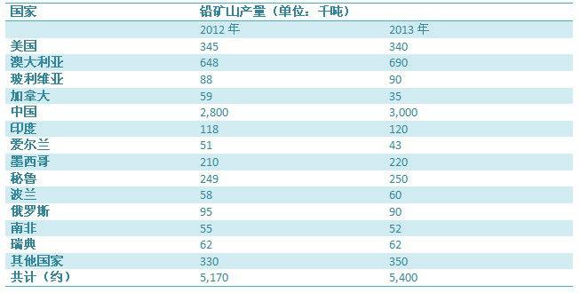 铅的资源分布及产量