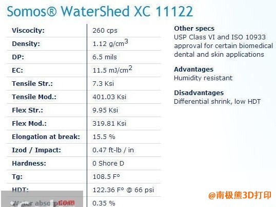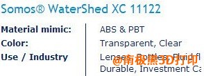 Somos WaterShed XC 11122-3D打印材料