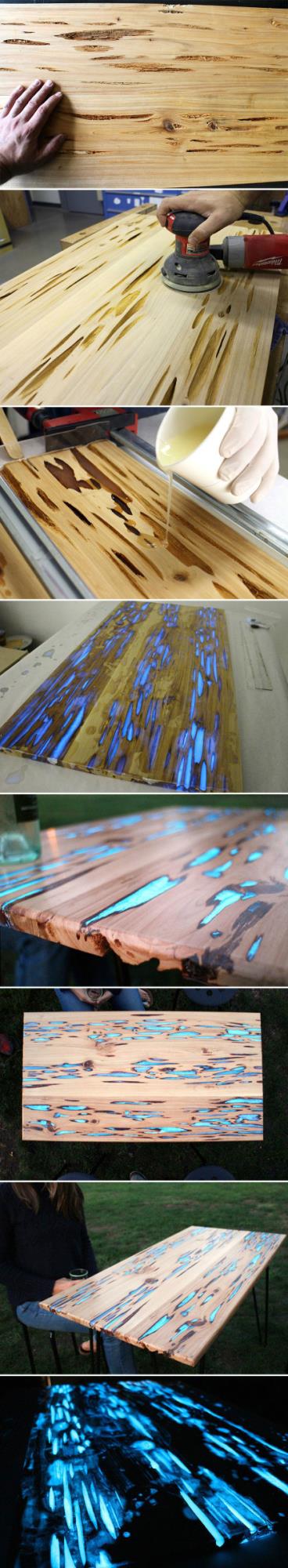用荧光树脂填充的桌子,夜光效果太酷炫了!