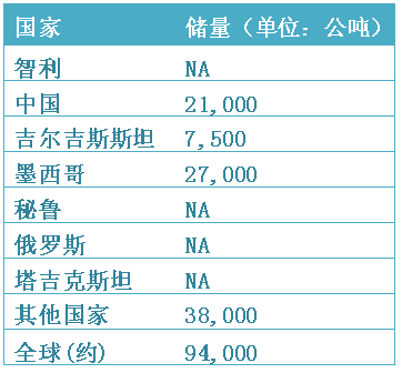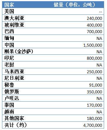 铜的资源分布及产量