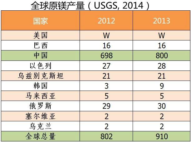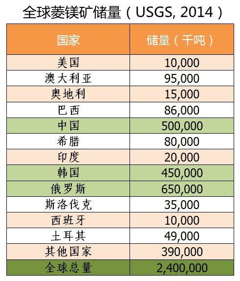 镁资源储量和矿产产量
