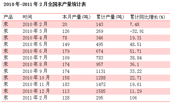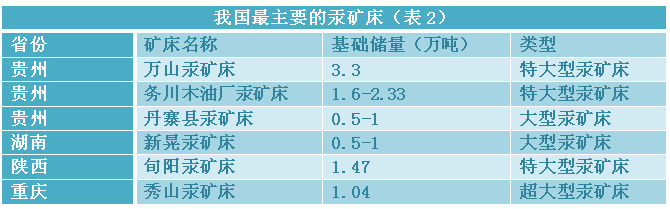 汞资源分布及产量情况