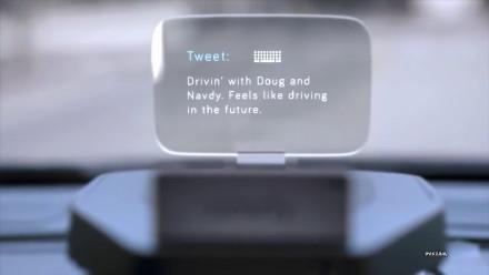 HUD, head up display,即抬头数字显示系统,放在汽车前方,可以用来导航和人机交互,支持手势和语音操控。下图是HUD的使用场景,未来将广泛集成在前挡风玻璃上。