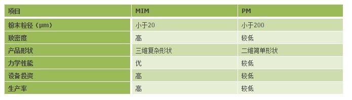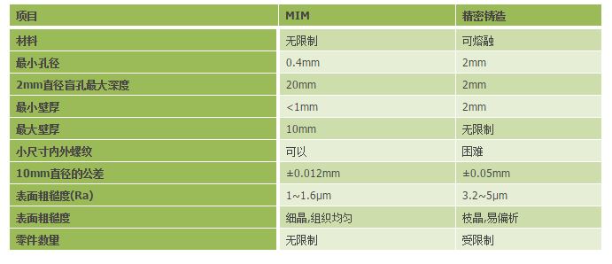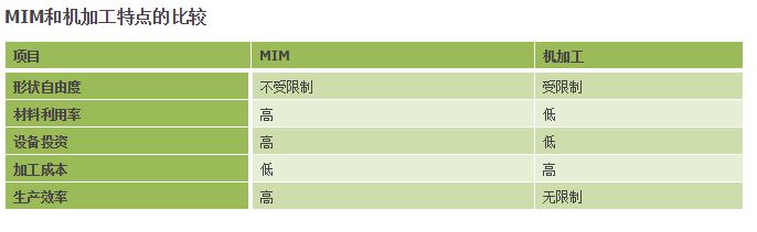 金属粉末注射成型工艺和各种金属成型工艺的对比