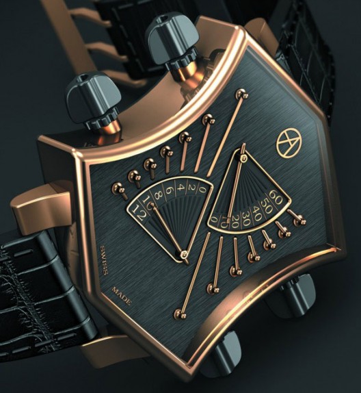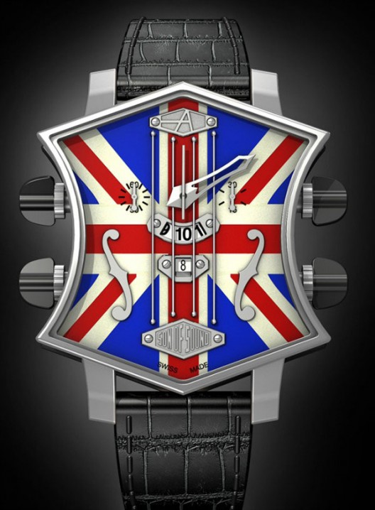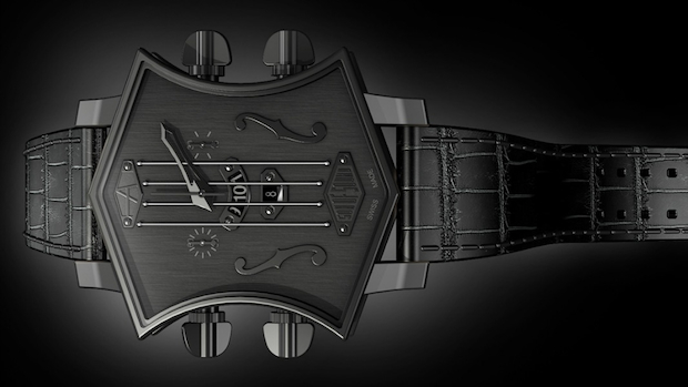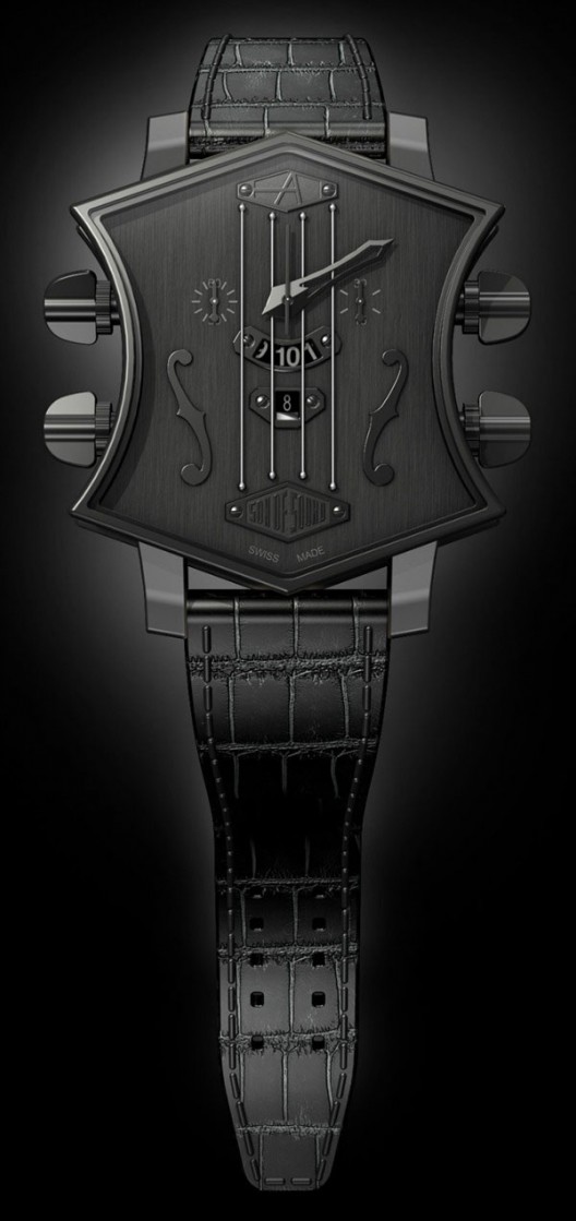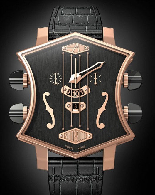 ARTYA Son of Sound系列的吉他头表壳形状设计颠覆传统,向音乐界尤其是摇滚乐致敬。从吉他调节按钮汲取灵感的调教按钮,在四根光滑琴弦下,较为宽大的时间显示视窗提供清晰读时。带有功能性的弦轴可用于调教时间外,亦能作为调校按钮激活计时码表功能。表盘宽度42mm,有钢,钛,PVD黑色钢质和18K玫瑰金材质版本可选。来源:e...