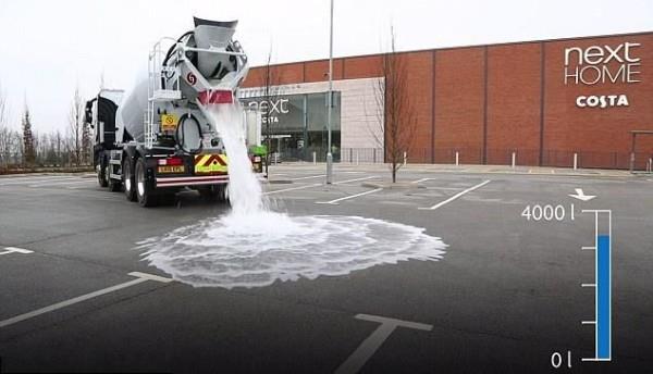 Lafarge Tarmac公司制造的这种神奇的混凝土被叫做 Topmix 渗透混凝土,吸水能力超强,允许水分渗透,看起来地面上的水仿佛被一条干涸的道路吸收一样,而不是让水停留在表面,形成积水。 通过这张动图可以了解到Topmix 渗透混凝土是如何在在 1 分钟之内吸收 4000L 的水。人们将 4000L 的水倒向地面,大部分的水在到达道路表面...