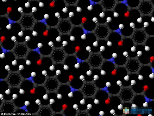 目前,美国军方最新研制一种高科技墙纸,粘在墙壁上可以抵御爆炸冲击波,避免墙壁内侧的士兵免遭伤害。它是由加固凯夫拉纤维粘性材料制成,图中是实验展示这种墙纸能够抵御碰撞冲击。这种墙纸是由加固凯夫拉纤维粘性材料制成,图中是该材料的分子模型结构,在体重比方面,它具有高拉伸强度,比钢铁结实5倍。当这种墙纸粘在墙...