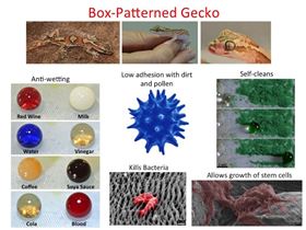 壁虎上的微小细毛使其几乎能够粘附在任何东西上,但是根据最新研究这些户外攀登者们却也有着不同寻常的皮肤。来自澳大利亚的阳光海岸大学、詹姆斯库克大学、昆士兰大学,还有香港大学以及牛津大学的科学家团队发现壁虎的皮肤有防潮、自清洁、抗菌功能。壁虎脚上的微结构“纤毛”带来的粘附性激起了科学家们的兴趣,希望在大自...
