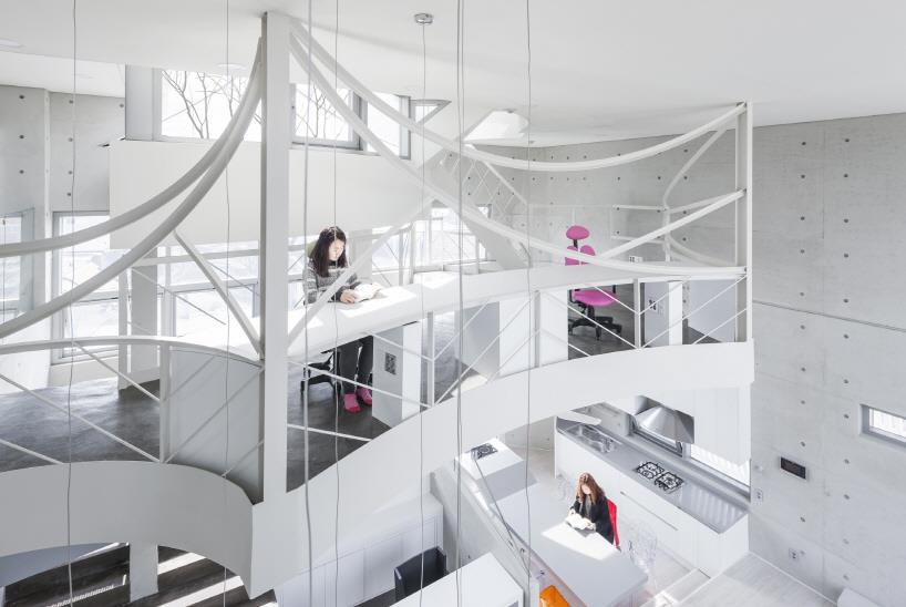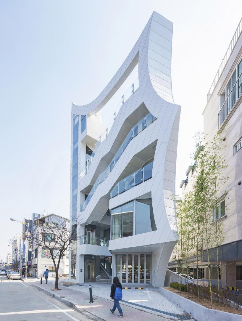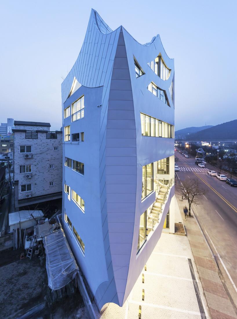由韩国公司IROJE KHM建筑事务所设计的“archi-fiore”蕴含许多含义,就是不包括简单。从顶部到底部的综合体,其雕塑般的形式包括咖啡厅、24小时服务的餐厅、办公场所以及这些空间之上的独户住宅。动态的楼梯构成了建筑内的活动路线,并且每个功能区之间完全独立。