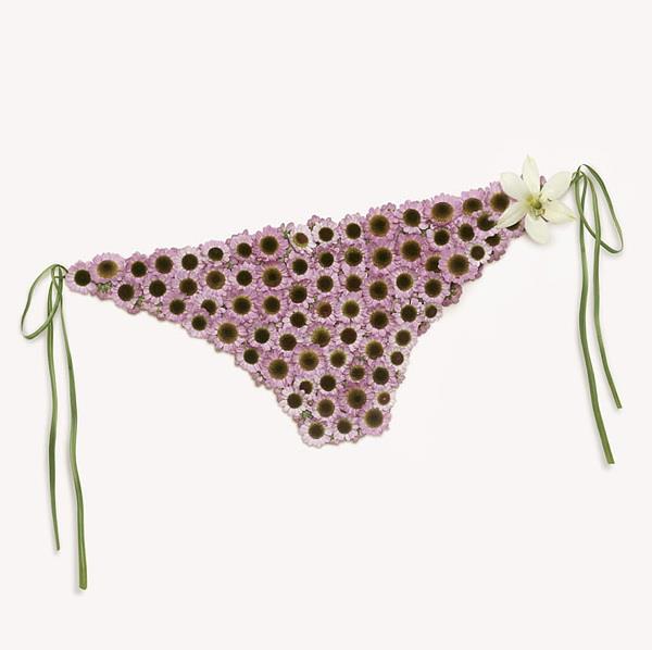 这是来自Fulvio Bonavia的创意艺术作品,它们是一般的衣服、附属品、鞋子等,但是是由与众不同的材料做成的:花。所有的模型都是真的,但是它们不是普通的能穿的衣物,只是合成体。