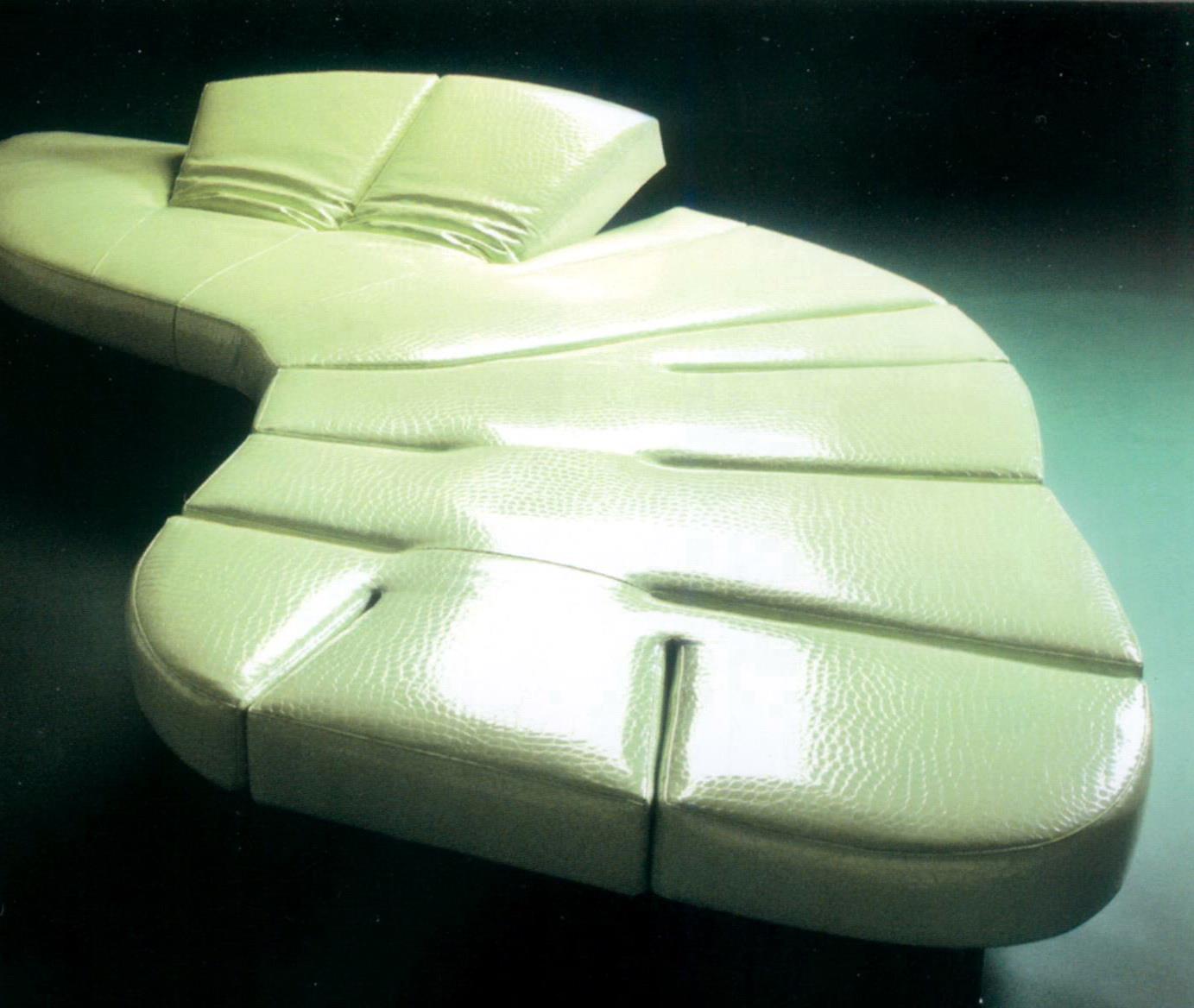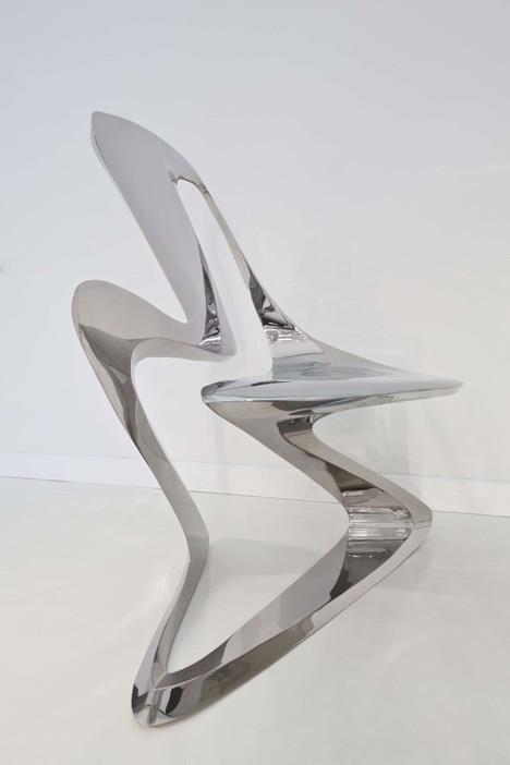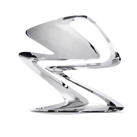 这是扎哈设计的新品,一款Z字形的时尚作品,椅子全部用不锈钢做成,全球限量24个。