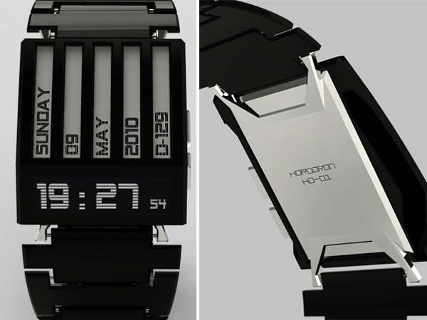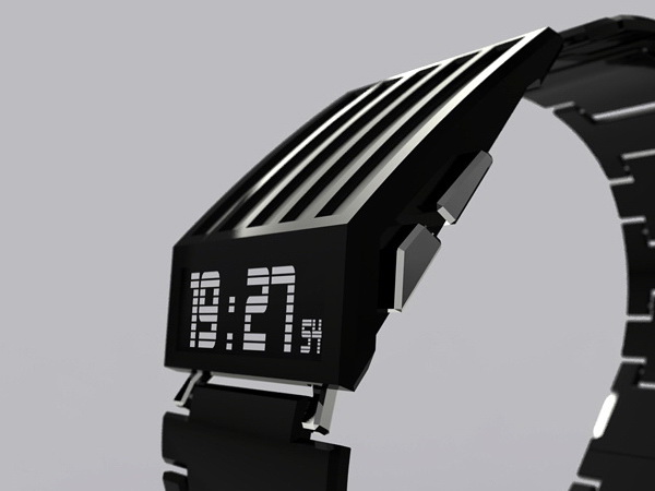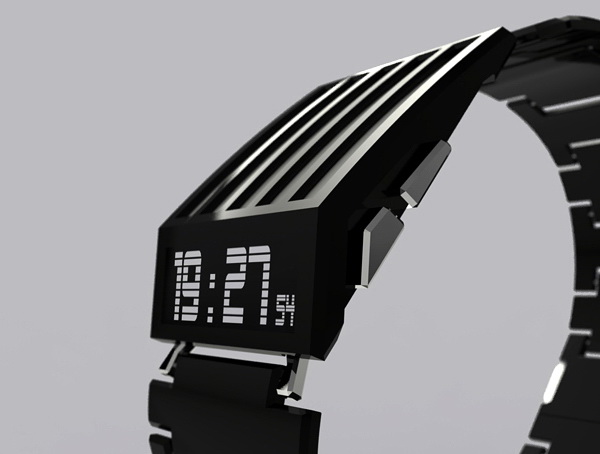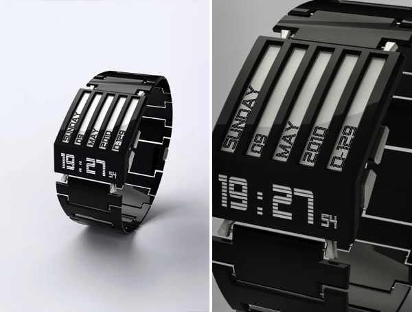 看看这气势,是不是有点像变形金刚们的装备。这个华丽的手表充满质感,非常能展现机器时代的辉煌。黑色的部分是涂有亮光漆的金属。