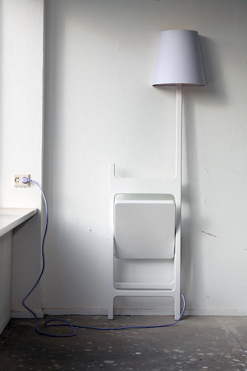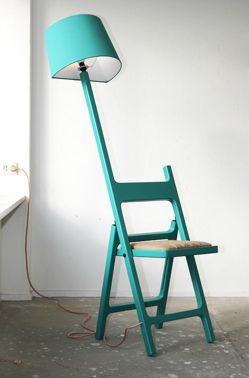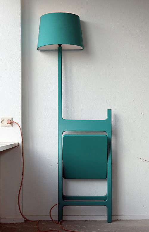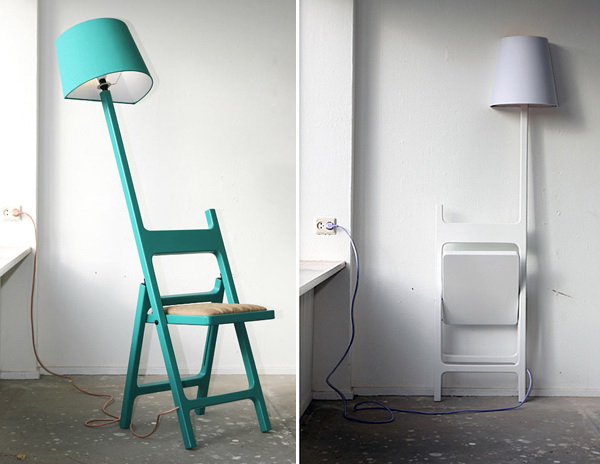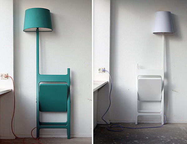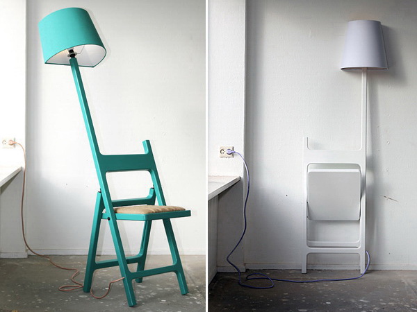 这个设计被称为诗人系列,它非常独特。设计将灯和椅子连在一起。灯的一侧被裁平,这样它能靠在墙面上。如果你只是想要一个灯,椅子也可以被折叠起来靠在墙边。