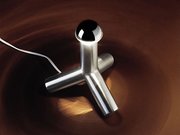 这款由英国设计师Jasper Morrison为瑞士品牌Punkt设计的闹钟叫做Punkt. AC 01,设计包含一个挤压的L形铝制底座,上面一个圆形的窟窿包含钟表表面和机械装置等。产品分为三种颜色:黑,红,白。