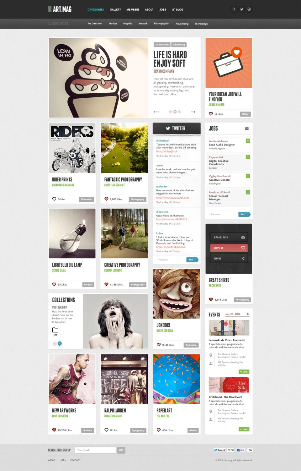 网页设计作为一种视觉语言,特别讲究编排和布局,虽然主页的设计不等同于平面设计,但它们有许多相近之处。版式设计通过文字图形的空间组合,表达出和谐与美。为了达到最佳的视觉表现效果,设计者将反复推敲整体布局的合理性,使浏览者有一个流畅的视觉体验。作为一名网页设计师我们需要关注生活,寻找设计灵感进行创作,但更多...
