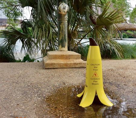 我们在游泳池、雨天的街道常能看见“当心滑倒”的告示,但有人认为它们太无趣。来点幽默感,把它们做成香蕉皮怎么样?毕竟,谁都知道踩上香蕉皮的后果!