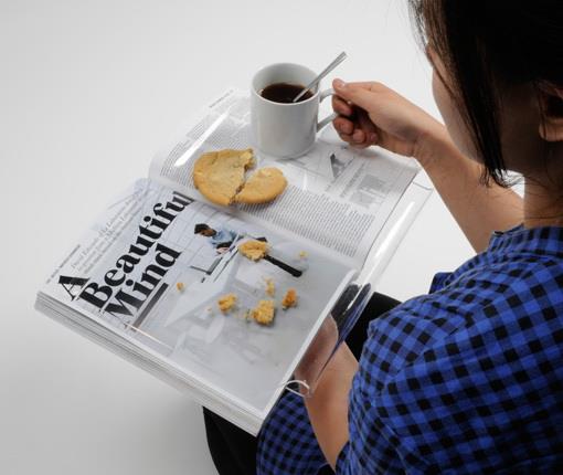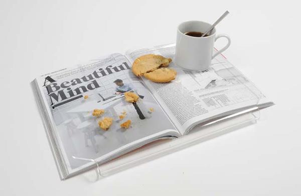 吃货福音!看书时不配杯饮料来点零食就太枯燥了不是吗?可是杯子放太远转头拿会分散注意力,饼干渣掉在书上容易把书弄脏, 韩国设计师Yuhun Kim的作品让问题迎刃而解——把书放进透明挡板,看书吃东西两不误!不过,嘴巴是舒服了,翻书恐怕不太方便吧?