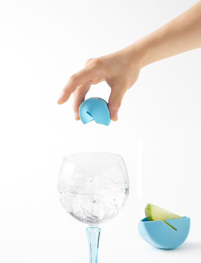 简易的柠檬口袋。挤柠檬会弄得满手都是柠檬汁?Nendo设计的柠檬口袋只需要将柠檬放在口袋中,轻轻一挤,柠檬汁就可以轻易地挤到酒杯中了。