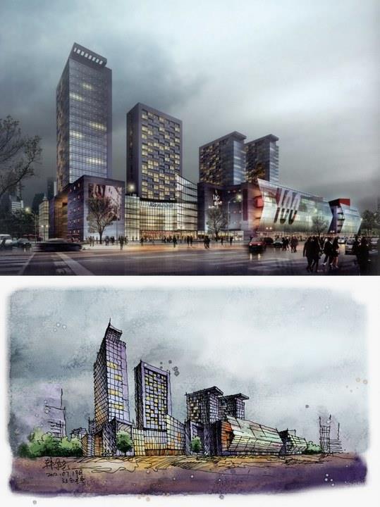 PS建筑草图上色