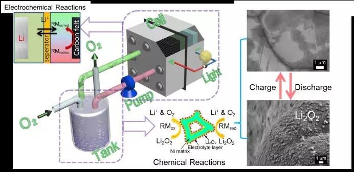 新加坡国立大学Wang Qing教授研究组成功地研制出一种新型的液流锂空气电池。该电池通过溶解在流动的电解液中的氧化还原分子,将过氧化锂的生成和分解与电池的阴极分离,有效地避免了电极孔隙的阻塞和钝化。该新型电池既可以保持锂空气电池的高能量密度,同时又具备传统液流电池的安全与灵活性。该项研究工作发表在英国皇家化...